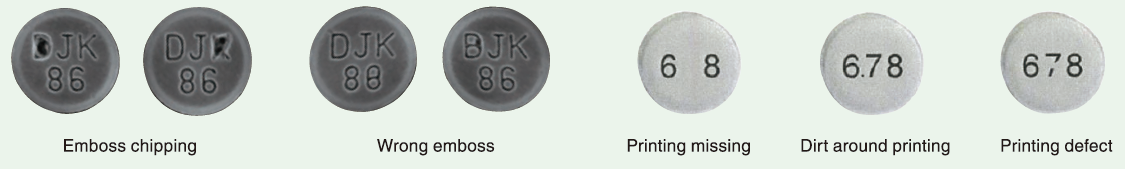 Improved emboss/printing inspection Each character inspection with our own algorisms enables to reject mainly for emboss/printing defects |