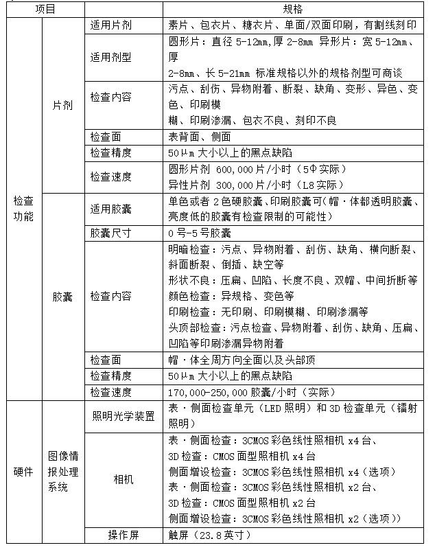 固體片劑/膠囊的制造工序繁雜,容易產(chǎn)生異物混入、變色色差、刻字印刷不良及各種外觀缺陷。因此,在制藥工程的最終環(huán)節(jié)設(shè)置自動異物外觀檢查,對確保藥品品質(zhì)起著重要作用。日本第一實業(yè)VISWILL公司是全球最早研發(fā)制作片劑外觀檢查系統(tǒng)的公司,同時也是行業(yè)首家將3D系統(tǒng)應(yīng)用外觀檢查的公司。 目前世界市場占有率超過70%,中國市場占有率超過90%,為片劑及膠囊制品的外觀檢測提供全套解決方案。