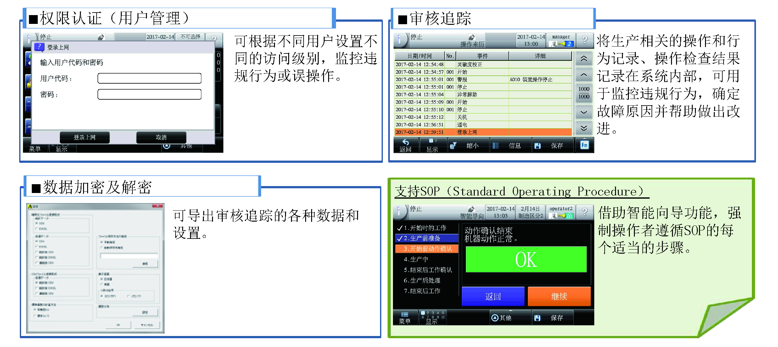 本機可提供FDA 21 CFR Part11中必要的權(quán)限認(rèn)證、審核追蹤、數(shù)據(jù)加密和解密,制藥行業(yè)的客戶可安心使用。