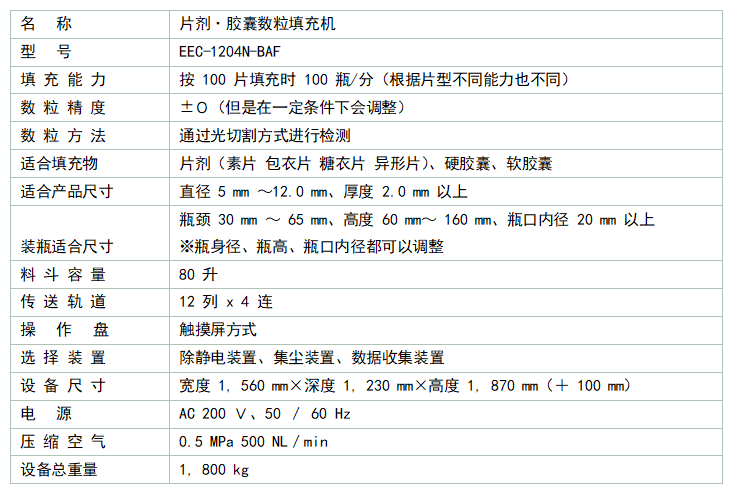 川越片劑·膠囊數(shù)粒填充機(jī)采用日本尖端技術(shù),搭載雙重檢測傳感器對各類片劑/膠囊產(chǎn)品進(jìn)行精確計(jì)數(shù),實(shí)現(xiàn)100%零誤差。同時(shí),通過時(shí)序閥門控制實(shí)現(xiàn)快速填充,品種登錄可以達(dá)到200種,成為全球行業(yè)首選。